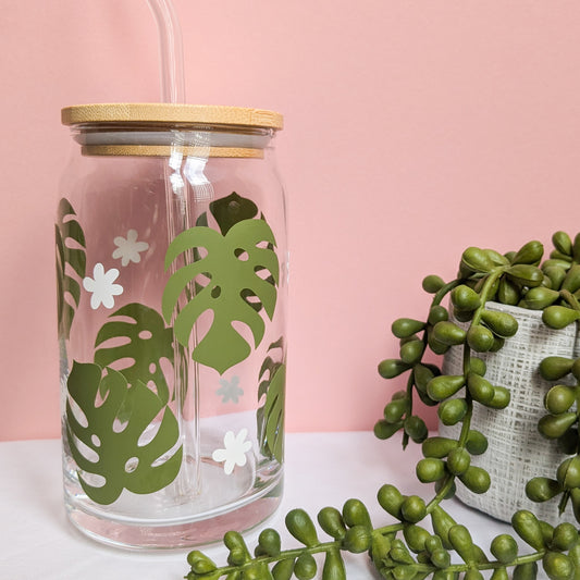 Monstera Leaf Design Glass Can Cup
