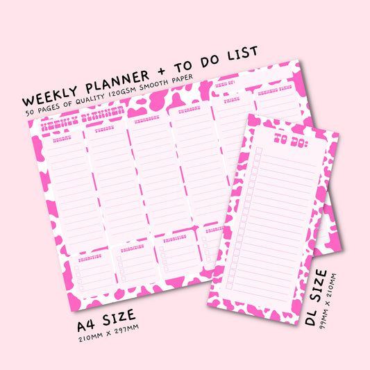Pink Cow Print Weekly Planner
