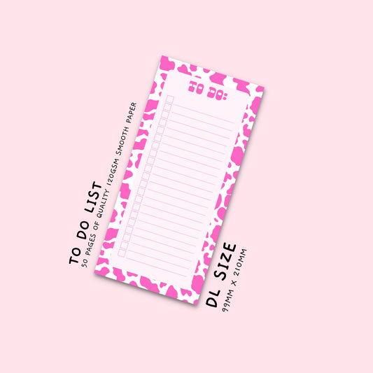 Pink Cow Print To Do List Notepad